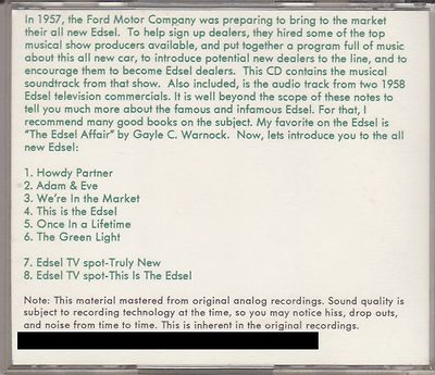 Title (ebay affiliate link): EDSEL AUTOMOBILE MUSICAL "ONCE IN A LIFETIME" CD (Recorded in 1957)
