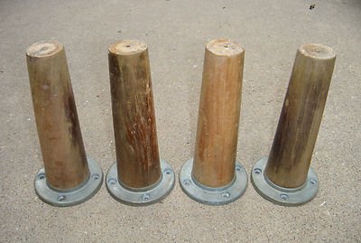 (4) 6.25" VINTAGE WOODEN MID-CENTURY MODERN TABLE LEGS ~ INDUSTRIAL STEEL PLATES