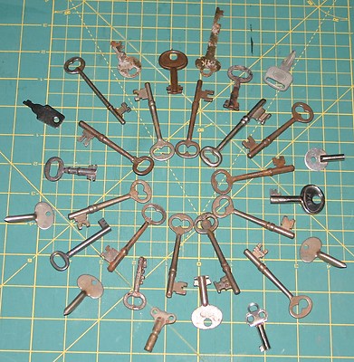 Title (ebay affiliate link): Lot of 30 Antique Vintage skeleton Keys furniture cabinet barrel padlock lock
