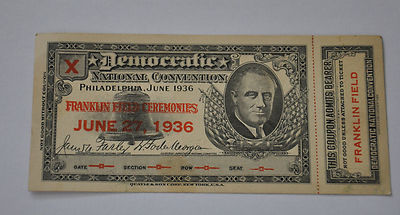 Title (ebay affiliate link): Democratic National Convention Ticket UNUSED 1936 Philadelphia portrait of FDR