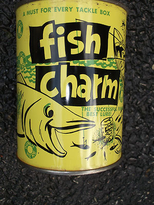 1930s Advertising Fish Charm Lure Bait Can w/ Hook
