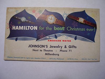 Title (ebay affiliate link): VINTAGE HAMILTON WATCH INK BLOTTER JOHNSON'S JEWELRY MILLERSBURG PA PHONE 71