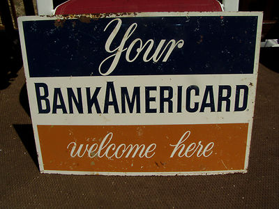 Title (ebay affiliate link): VINTAGE 1950s - 60s DOUBLE SIDED BANK AMERICARD STORE SIGN 24x18