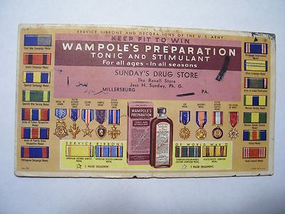 INK BLOTTER SUNDAY'S DRUG STORE MILLERSBURG PA. WAMPOLE'S PREP. ARMY WAR MEDALS