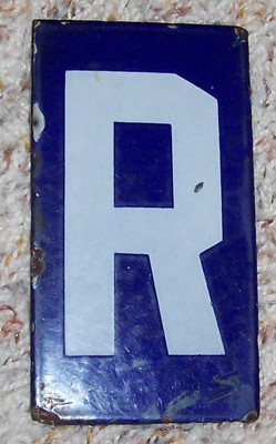 Vintage cobalt blue enamel retro sign letter R
