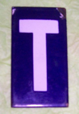 Vintage cobalt blue enamel retro sign letter T