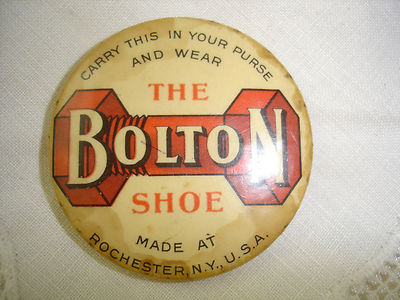 Title (ebay affiliate link): Vintage Celluloid Pocket Mirror "The Bolton Shoe" Rochester, NY