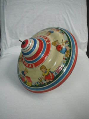 Title (ebay affiliate link): Vintage Ohio Art Company Metal Spinning Top Toy Choral Little Boy & Girl Design