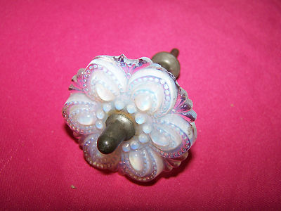 Pair of Vintage Milk Glass & Metal Curtain Knobs; Floral Pattern