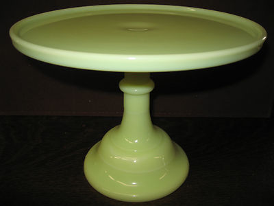 Vaseline yellow milk Glass cake serving stand plate platter pedistal uranium art