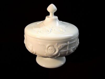Title (ebay affiliate link): WESTMORELAND Milk Glass 3 Rose & Lattice Candy Dish & Lid~Excellent