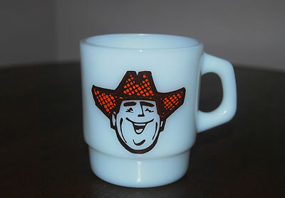 Title (ebay affiliate link): Anchor Hocking - Vintage Retro Cowboy White Milk Glass Coffee / Tea Mug / Cup