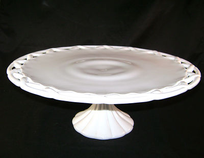 Title (ebay affiliate link): Large 14" L E Smith Laced Edge Milk Glass pedestal Cake Stand / Plate