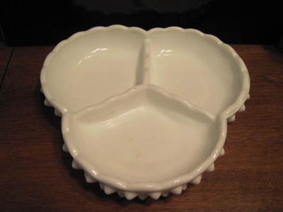 Title (ebay affiliate link): Fenton White Milk Glass Hobnail Relish Dish 7 1/4" Across Three Section VINTAGE