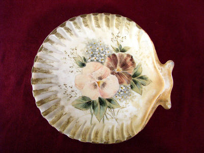 Title (ebay affiliate link): Milk Glass Satin Shell Shape Tray Platter Decorated With Pansies