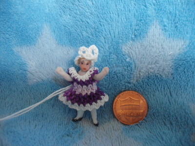new dress hat handmade crochet baby miniature antique bisque german 1 1/2" doll