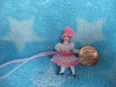 new dress hat handmade crochet baby miniature antique bisque german 1 1/2" doll