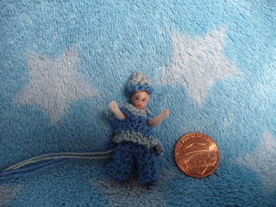 new shirt pants hat crochet baby miniature antique bisque german 1 1/2" doll toy