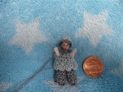 new shirt pants hat crochet baby miniature antique bisque german 1 1/2" doll toy