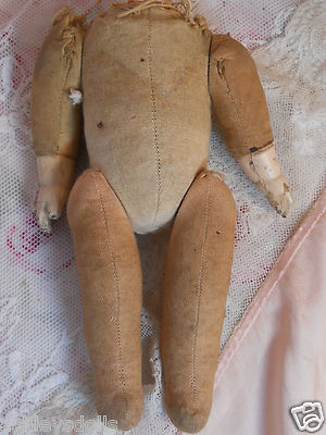 Title (ebay affiliate link): 7" Antique Cloth Doll Body w Composition Lower Arms and Hands, Jointed!