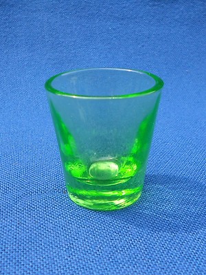 Title (ebay affiliate link): Vintage Vaseline Glass Shot Glass 2" tall GLOWS Uranium Green Depression Glass