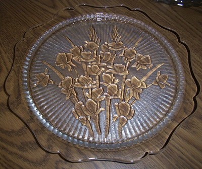 Title (ebay affiliate link): Jeanette Glass Iris & Herringbone Clear 1 - 12 Inch Platter Plate Vintage