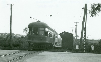 Small B&W Photo Trenton Princeton Transit Trolley Rt 206 Crossing Princeton NJ