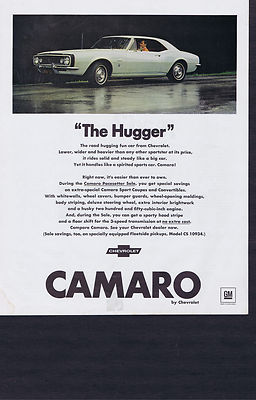 Title (ebay affiliate link): ORIGINAL 1967 CHEVROLET CAMARO "THE HUGGER" PRINT AD