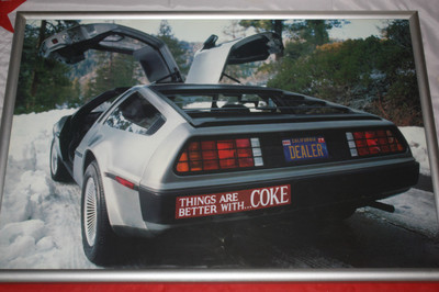 Title (ebay affiliate link): Vintage DeLOREAN COKE DEALER POSTER back to the future COCA COLA VERY RARE 80s