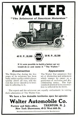 Title (ebay affiliate link): 1907 Brass-Era CAR ADS: WALTER Limo, ATLAS Runabout, Pennsylvania Touring