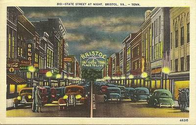 Bristol VA State Street at Night Postcard,#s1139