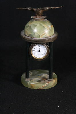 ANTIQUE BRONZE DOME TOP W EAGLE + AGATE TOP CLOCK NR