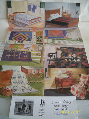 AMISH ARTIST SUSIE RIEHL QUILT POSTCARDS SET OF 8 SUITABLE FOR FRAMING