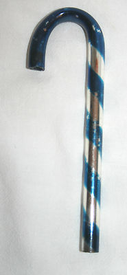 Title (ebay affiliate link): 1930s Blue & Silver Glass Candy Cane Christmas Tree Ornament. U.S.A.