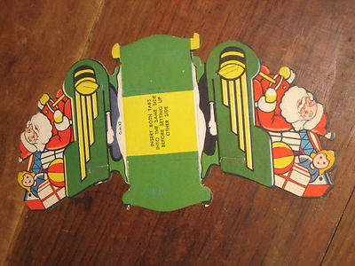 Vintage Christmas Santa in Sleigh with toys folded Candy Box Party Favor unused