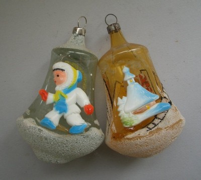 Title (ebay affiliate link): 2 Vintage Blown Glass INDENT BELLS W/ FIGURES Christmas Ornaments