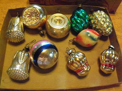 10 VINTAGE MERCURY GLASS CHRISTMAS ORNAMENTS