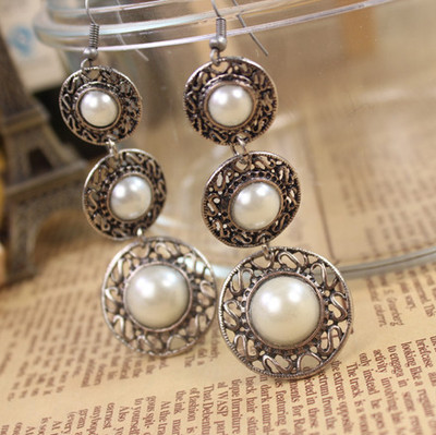 Title (ebay affiliate link): Antique Vintage Silver Round White Pearl Dangle Chandelier Ethnic Earrings