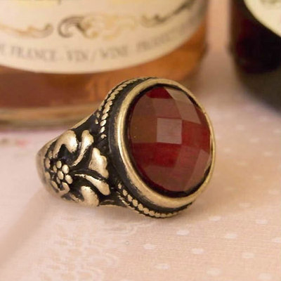 Title (ebay affiliate link): Vintage Antique Ruby Red Faceted Stone & Bronze Flowers Retro Style Ring