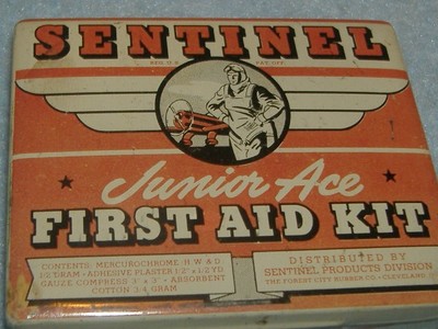 Title (ebay affiliate link): FIRST AID MEDICAL TIN PILOT AIRPLANE GRAPHIC SENTINEL JUNIOR ACE Antique Vintage