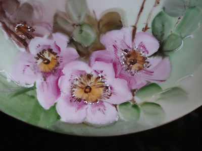 ANTIQUE LIMOGES HAND PAINTED SIGNED 8 1/2 PLATE, WILD ROSES