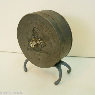 Desktop Clock antique old tin hollow painting of a ship