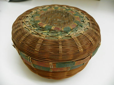 Title (ebay affiliate link): Vintage wooden wood tea basket trinket sewing box advertising label Home Decor