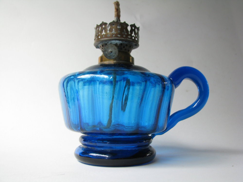 Fine Peacock Blue Glass finger Lamp Ca1900 Lamp Font Base