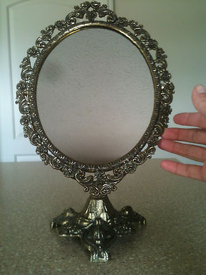 Title (ebay affiliate link): Antique Vintage All Metal With Brass Coat Footed Table Mirror - Floral Design