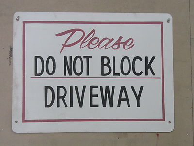 Title (ebay affiliate link): Vintage Hand-Lettered Painted metal Sign "Please DO NOT BLOCK Driveway"