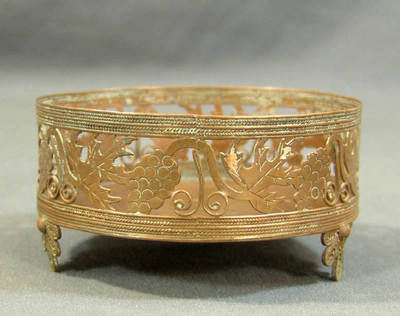 Title (ebay affiliate link): ANTIQUE COPPER FILIGREE LIQUOR ABSINTHE WINE VINO BOTTLE COASTER GRAPES & LEAVES