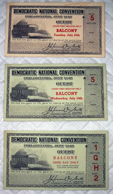 1948 Democratic National Convention Tickets-(3 Tickets!)
