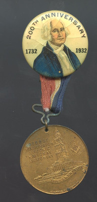 GEORGE WASHINGTON 1932 Masonic Medal & Celluloid Pinback Button