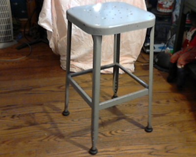 VINTAGE INDUSTRIAL GRAY 30 " H- LYON MFG CO STOOL - W / 14" SQUARE SEAT- NICE
